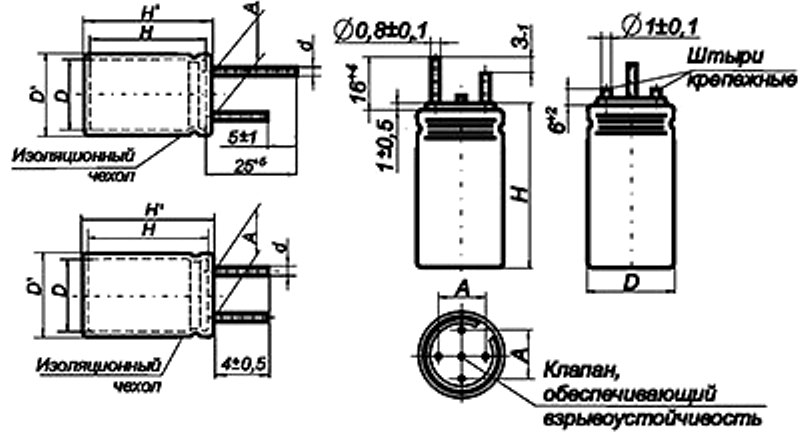 - Номинальное напряжение: 6,3... 450 В