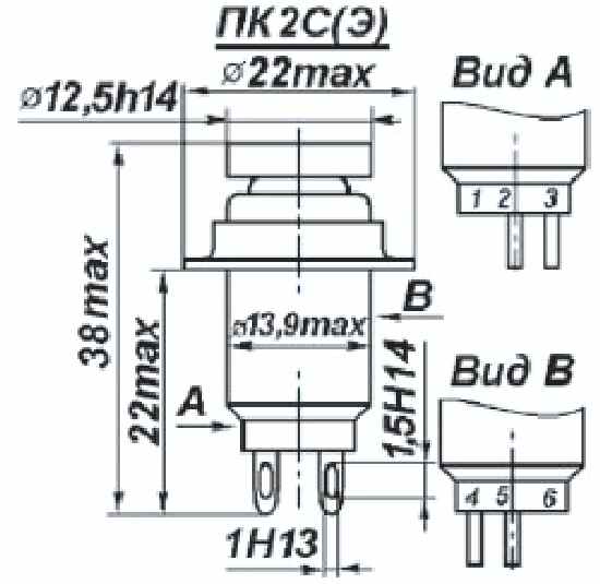 1 – после дефиса – типономинал, определяющий электрические режимы коммутации; 1, 2 или 3; типономинал 2 для кнопок ПК19 – не указывается.