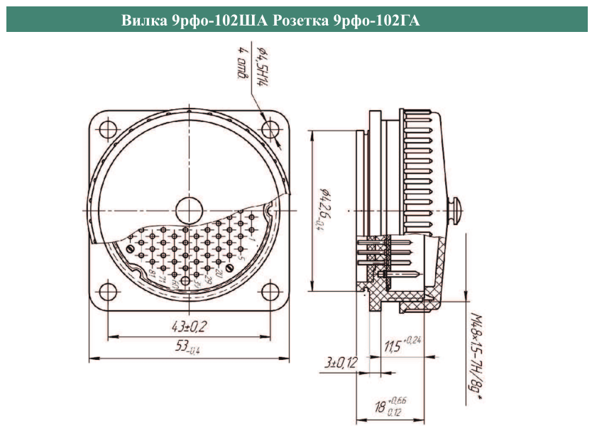 Вилка (Розетка) 9РБ(К,Г,Т,Н,О,Л,У,Ф,1С,2С,2З,Д)-102А(В), где
