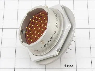 Тип соединителя: вилки цилиндрические многопозиционные типа ОНц-БГ-1 для печатного монтажа, предназначены для работы в электрических цепях постоянного, переменного (частотой до 3 МГц)  и импульсного токов при напряжении до 250 В (для переменного и импульсного токов – амплитудное значение).