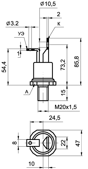 ТЧ100-10 - быстродействующий тиристор штыревого исполнения.